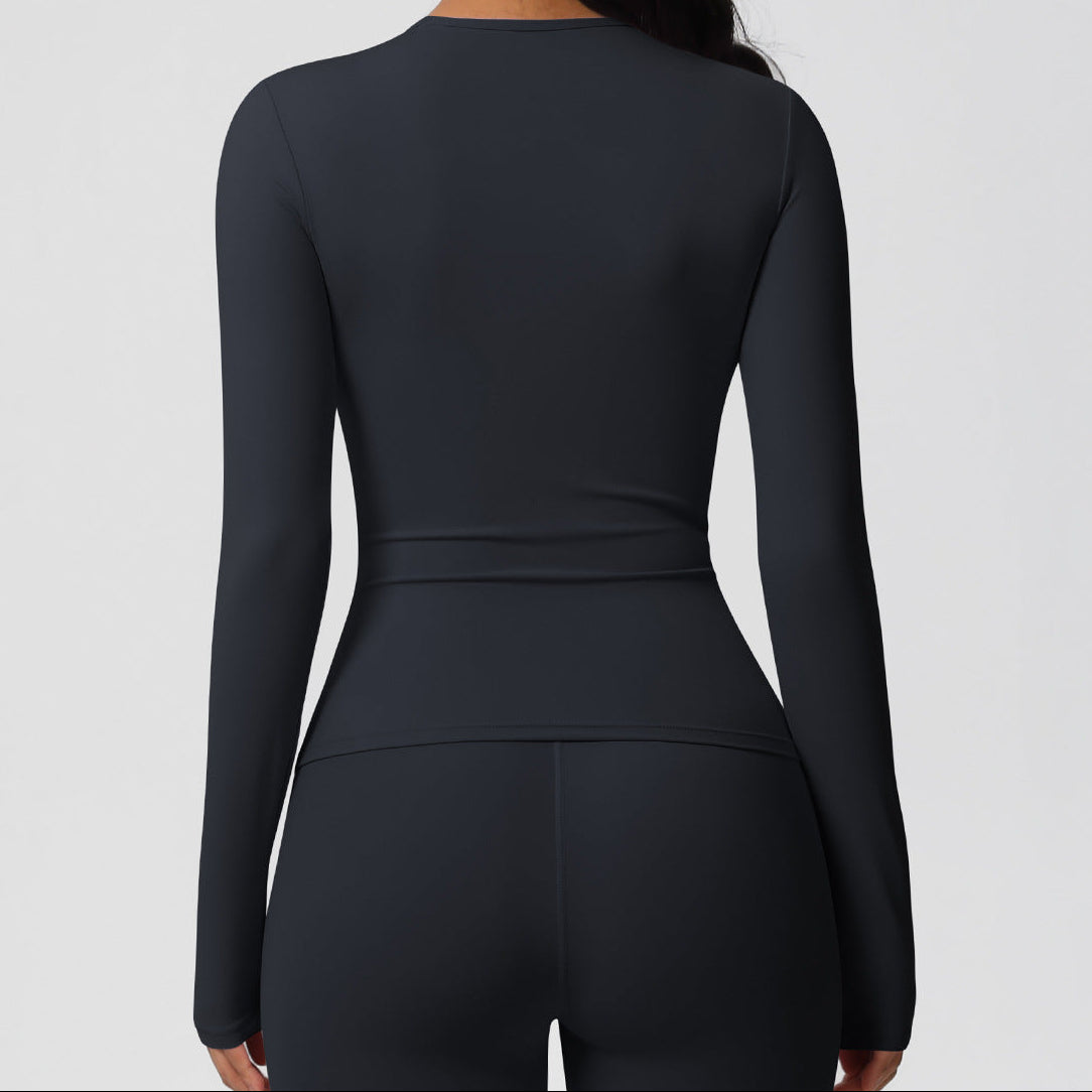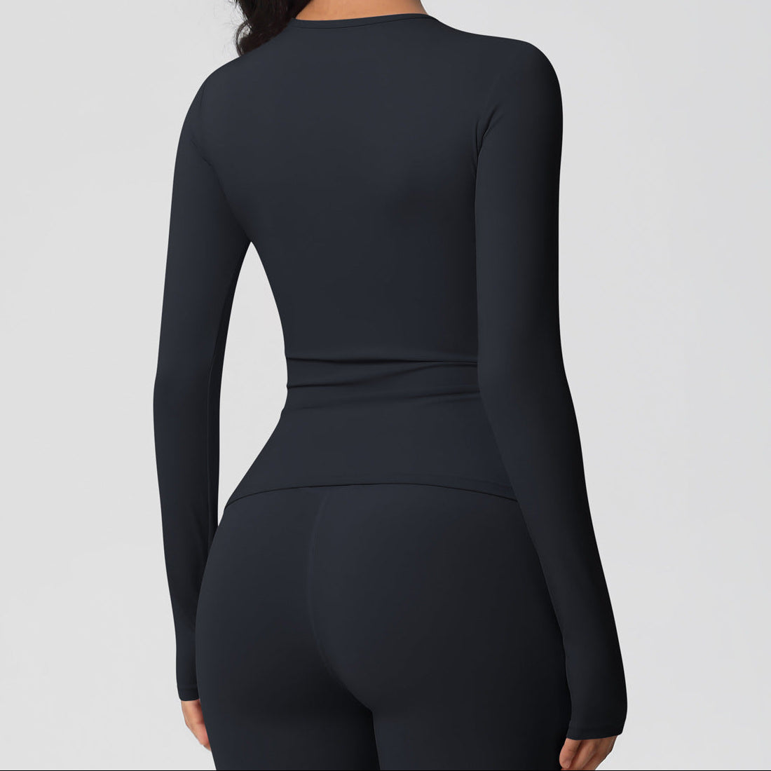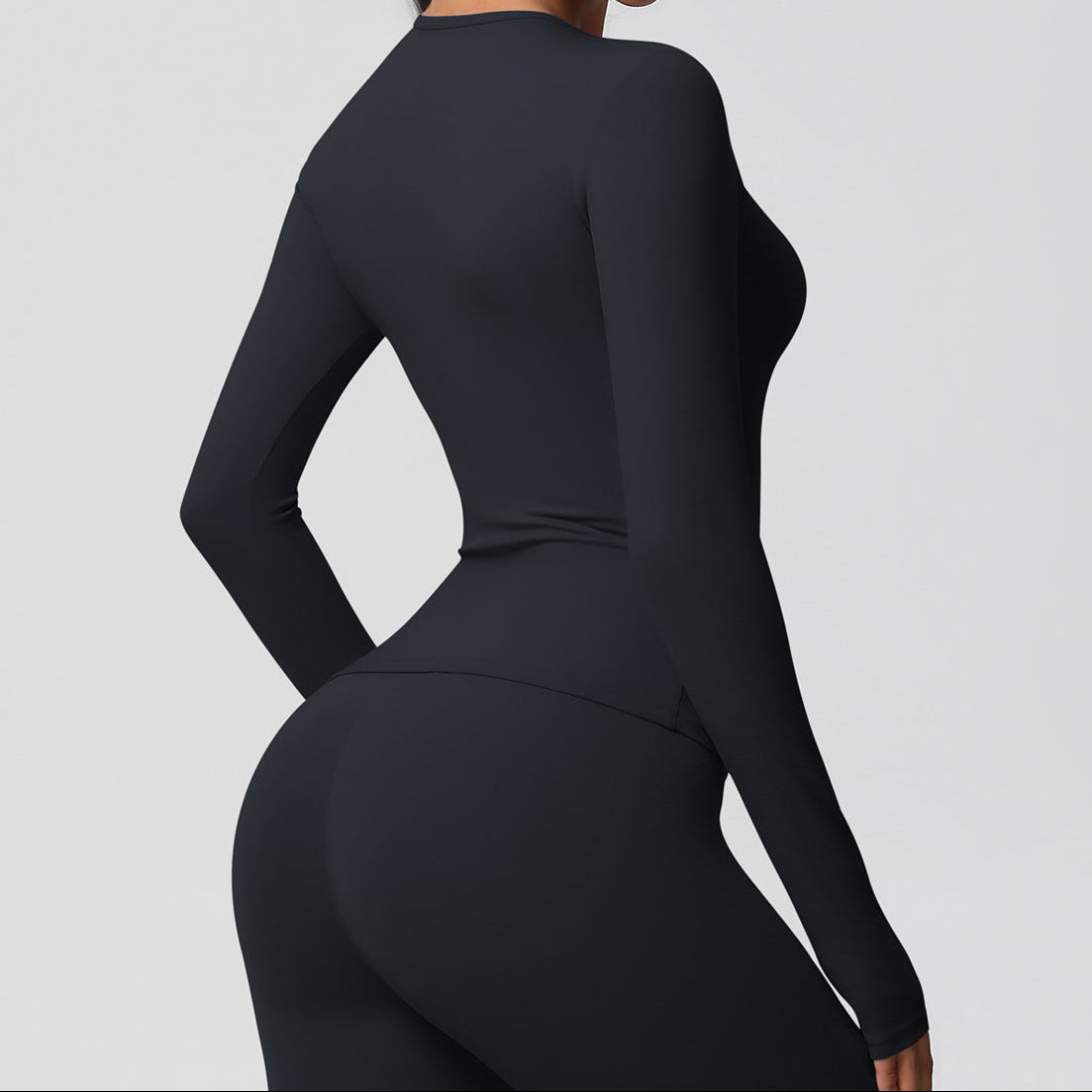 Спортна блуза по тялото с дълъг ръкав - Черен