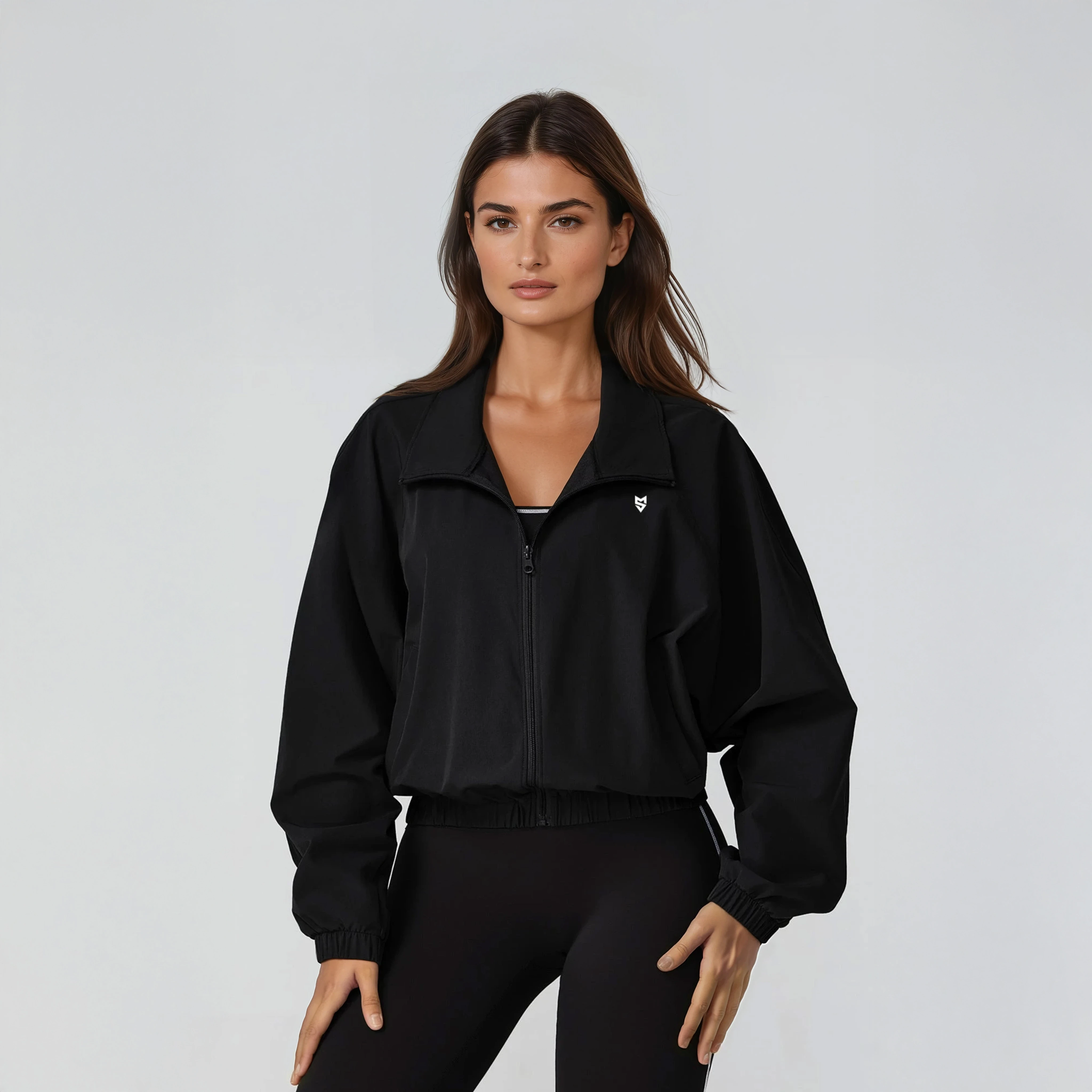 Олекотено Яке - Ветровка с Цип - Черен